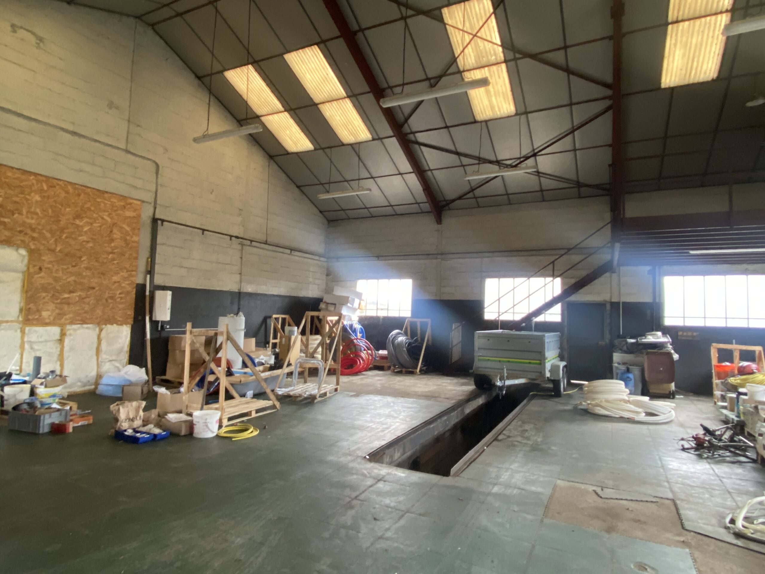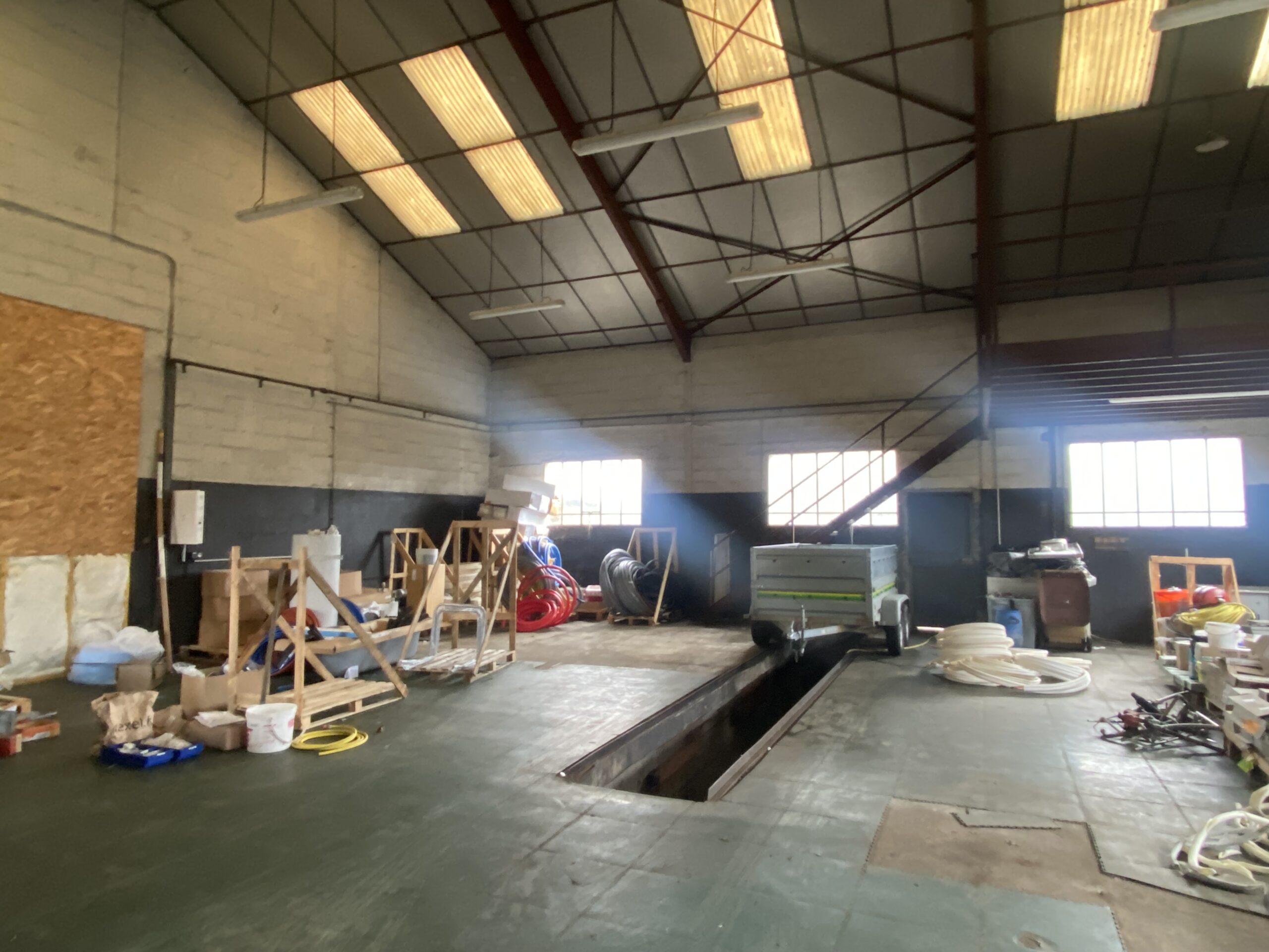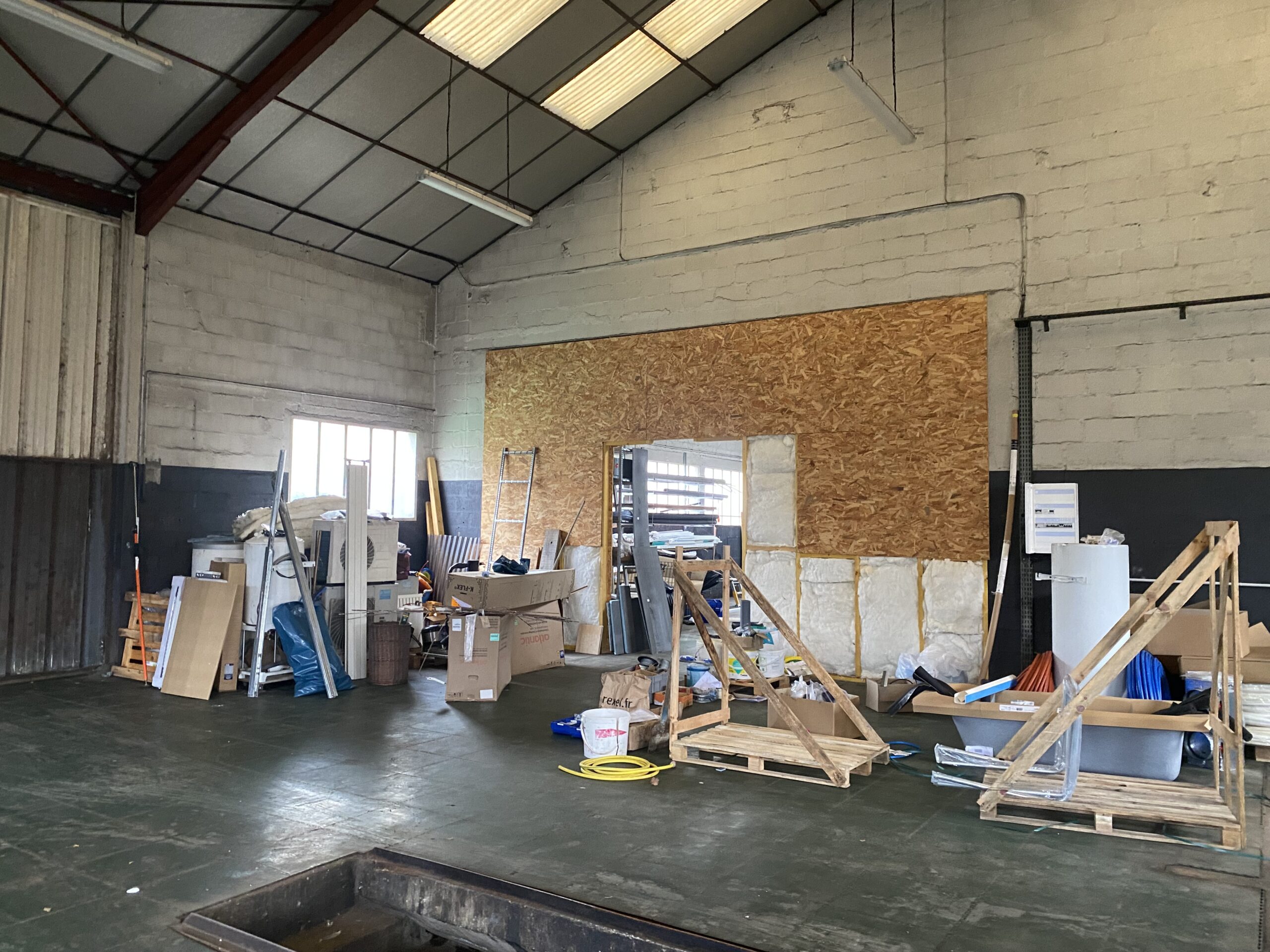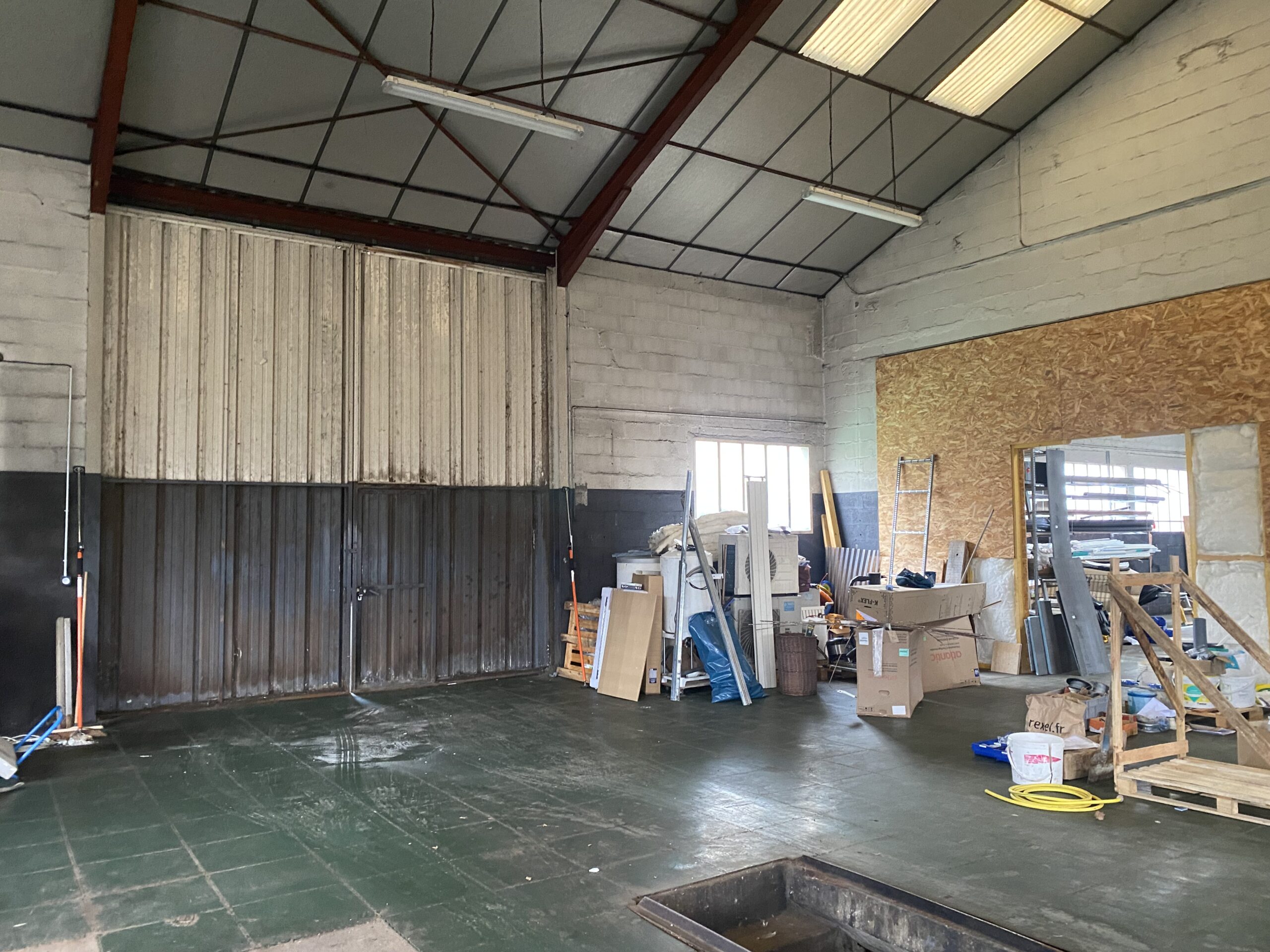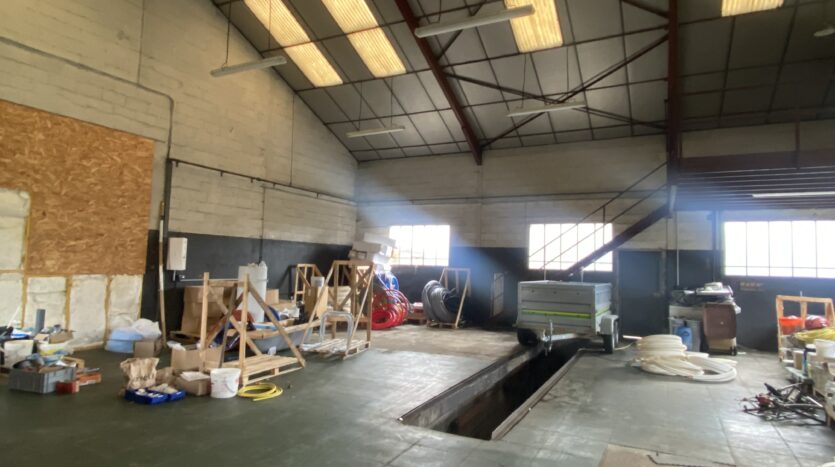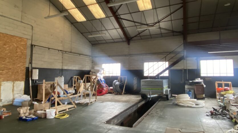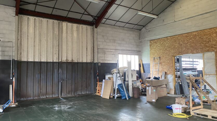 Dans un bâtiment artisanal, une partie à usage de dépôt de 200 m² avec un grand portail. Terrain sur l’arrière et le côté. Le terrain est clôturé. Possibilité d’avoir sous compteurs eau et électricité.