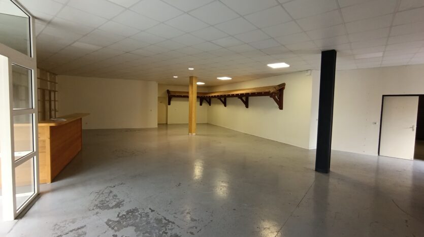 local commercial qui offre une superficie de 375 m² développée, dont 350 m² au sol. Au rez-de-chaussée, vous trouverez une grande salle et un atelier. L’accès est facilité par un portail sectionnel à l’arrière. À l’étage, deux bureaux. Un local de 23 m² est sous-louée par le locataire à une laverie et génère un loyer de 421 €/mois. Les compteurs d’électricité et d’eau sont indépendants. La taxe foncière pour 2024 est de 5 689 €. Terrain de 998 m².