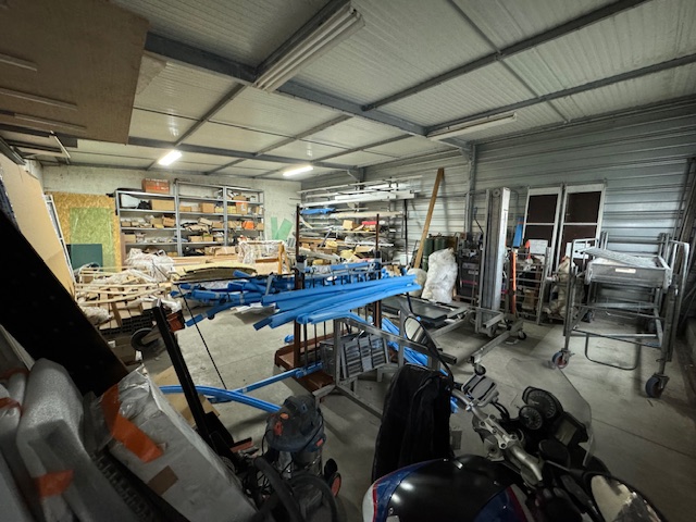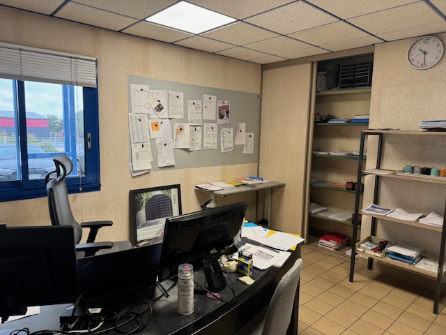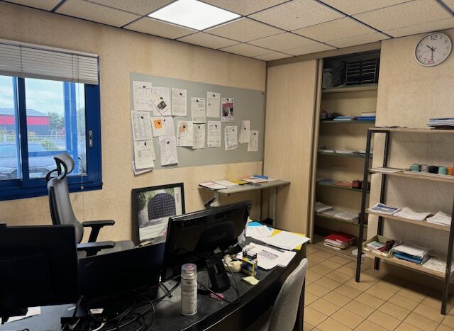 Un bâtiment de 570 m² avec une partie comprenant un atelier avec deux portails sectionnels, 3 bureaux. Toiture en partie en fibro-amianté pour 410 m² et bac acier pour une extension de 160 m².