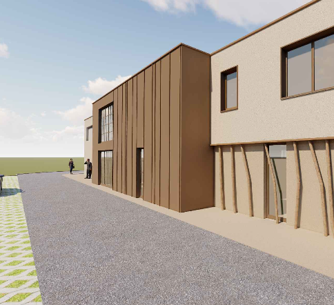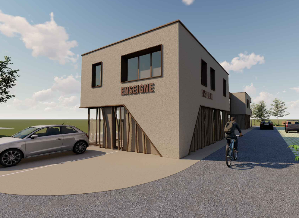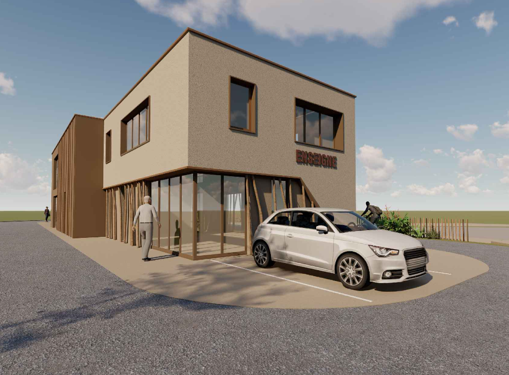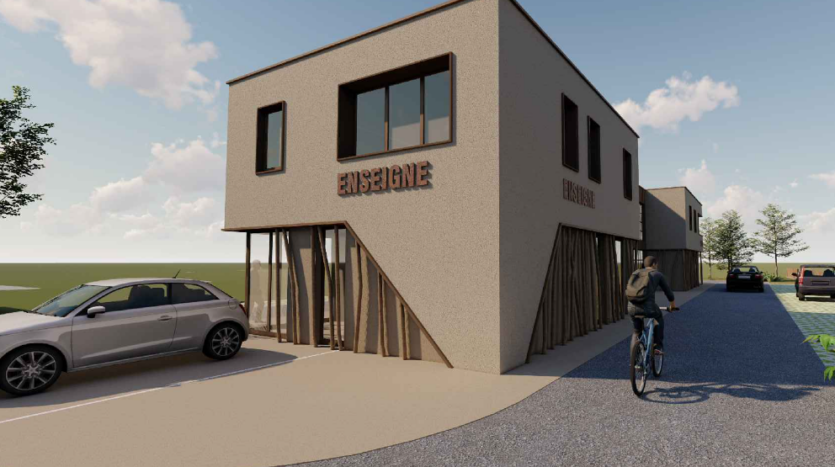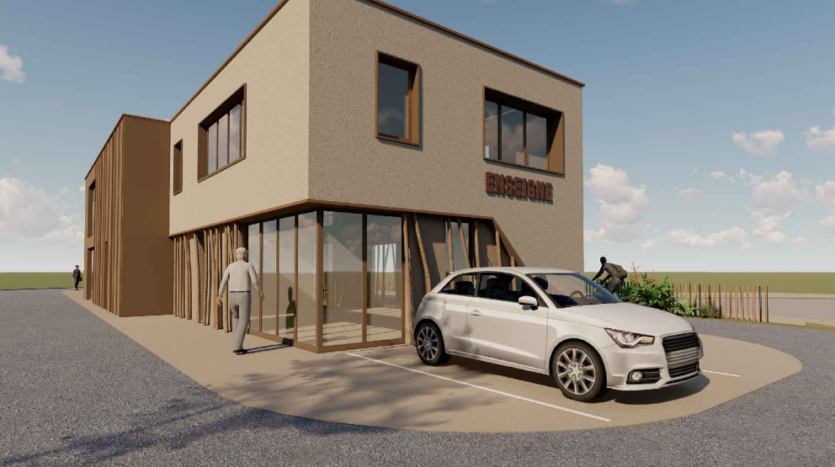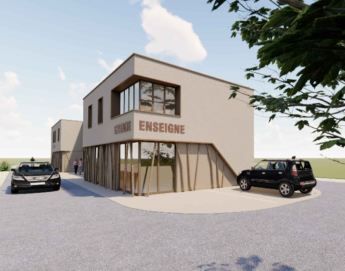 Dans la zone d’activités Le Grand Village, un bâtiment industriel de 1 000 m² compren ...