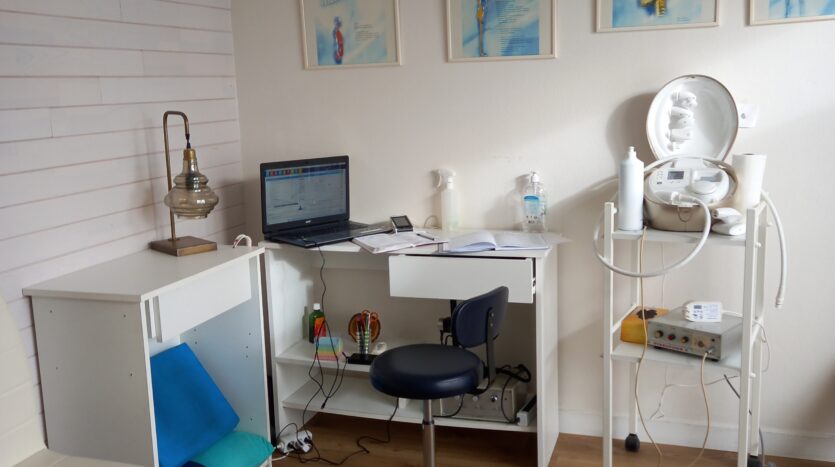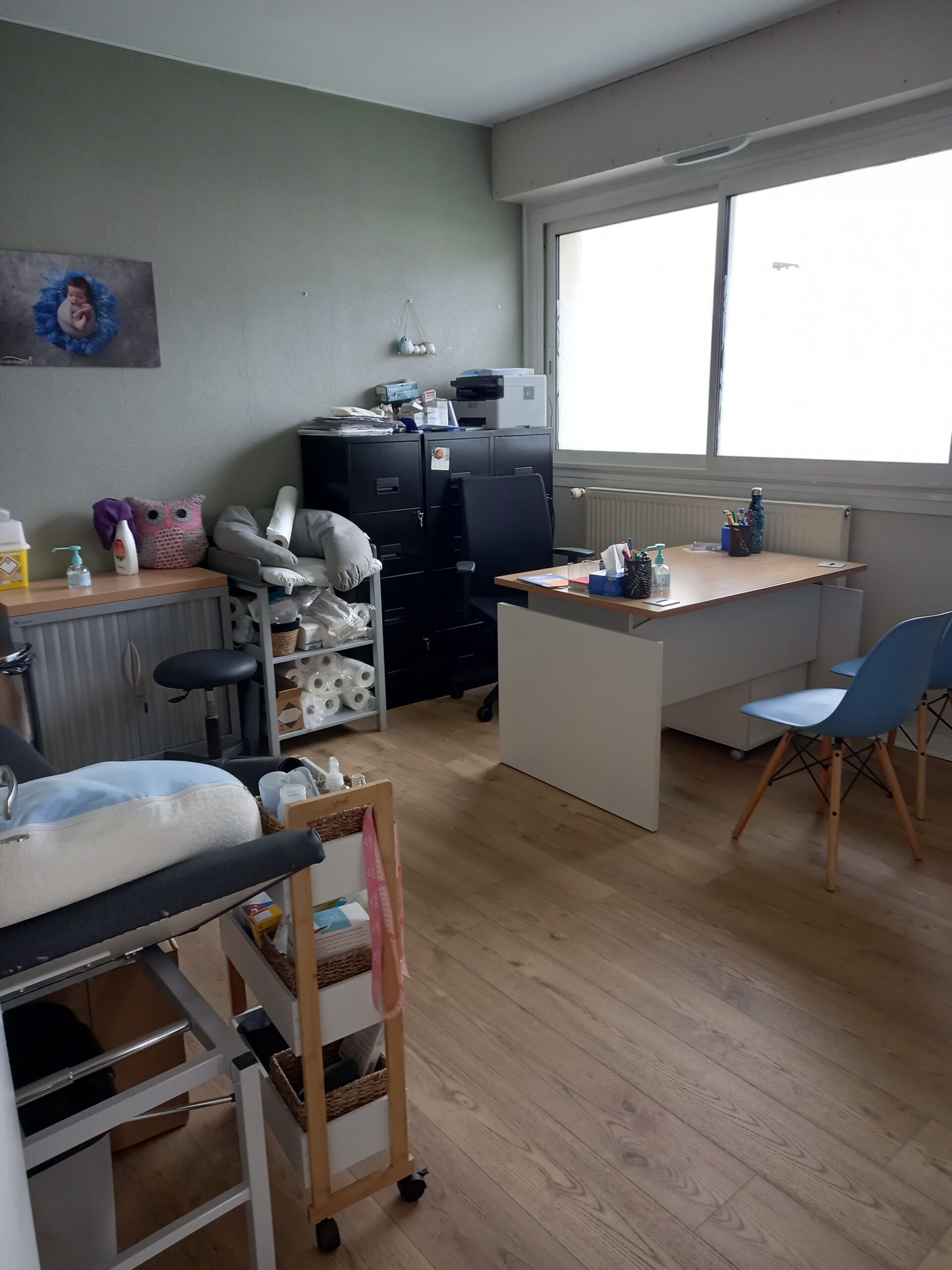 Un local professionnel de 96,60m² comprenant un hall d’entrée de 10,56m², une salle d’attente, une salle de consultation, 3 salles de soins et une salle de bains.