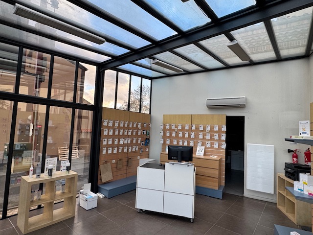 Local professionnel d’environ 145 m², comprenant une surface de commerciale avec une vitrine en façade, un bureau à l’arrière, une salle de pause, toilettes PMR.