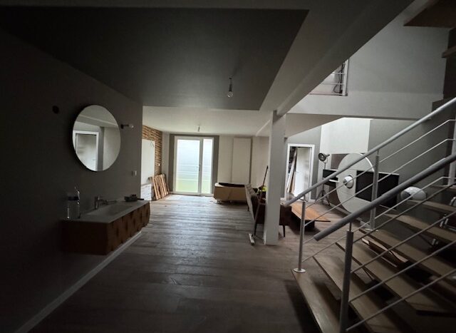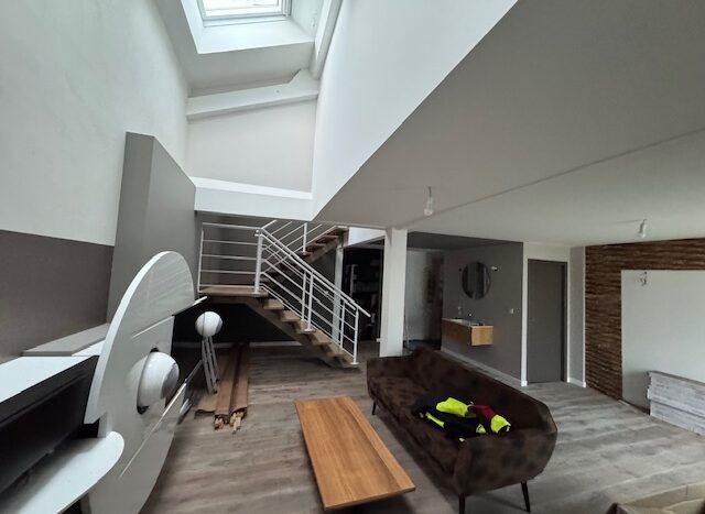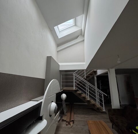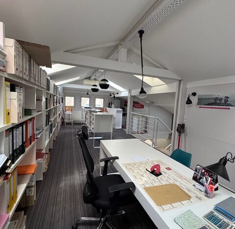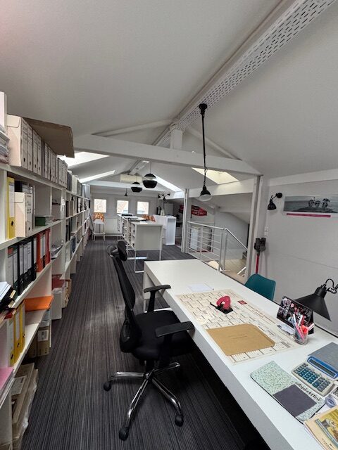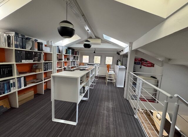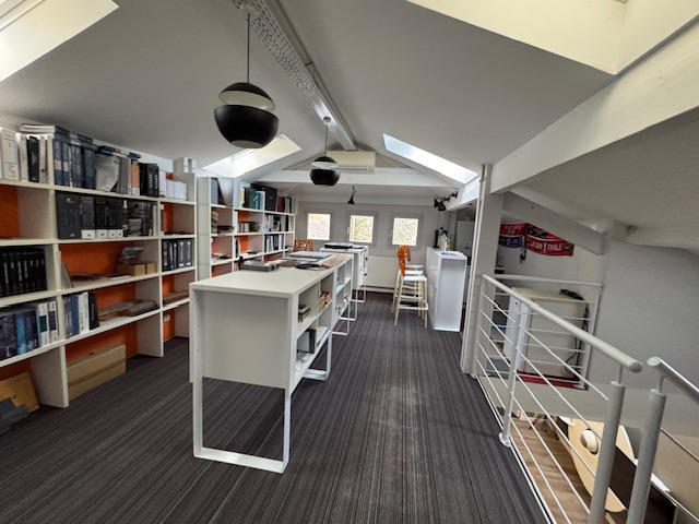 Un espace bureaux et showroom sur deux niveaux, toilettes.