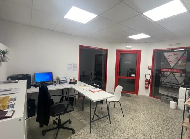 Construit en 2018, un bâtiment artisanal d’environ 200 m² comprenant un espace bureau d’environ 43 m² aménagé d’un secrétariat, d’un office, un placard technique, toilettes, 1 bureau.
