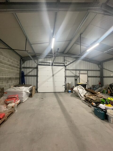 Un dépôt de 135 m² avec un portail sectionnel.