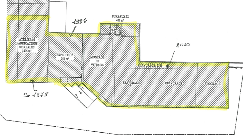 Un bâtiment industriel de 5 730 m² comprenant un espace à usage de bureaux et sanitaires, et une zone de stockage avec quais et portails sectionnels, mezzanines. Bâtiment isolé double peau chauffage gaz aérotherme.