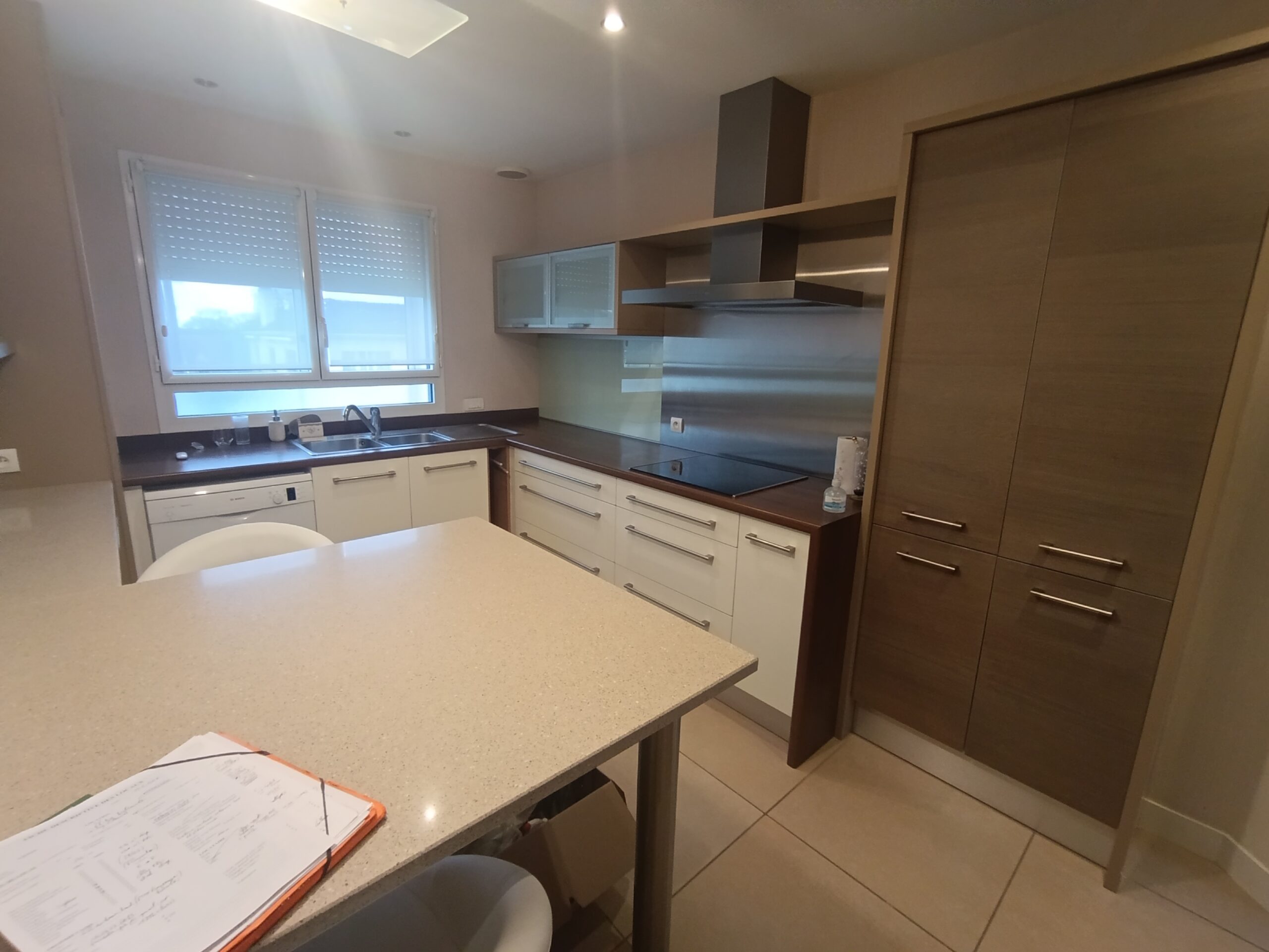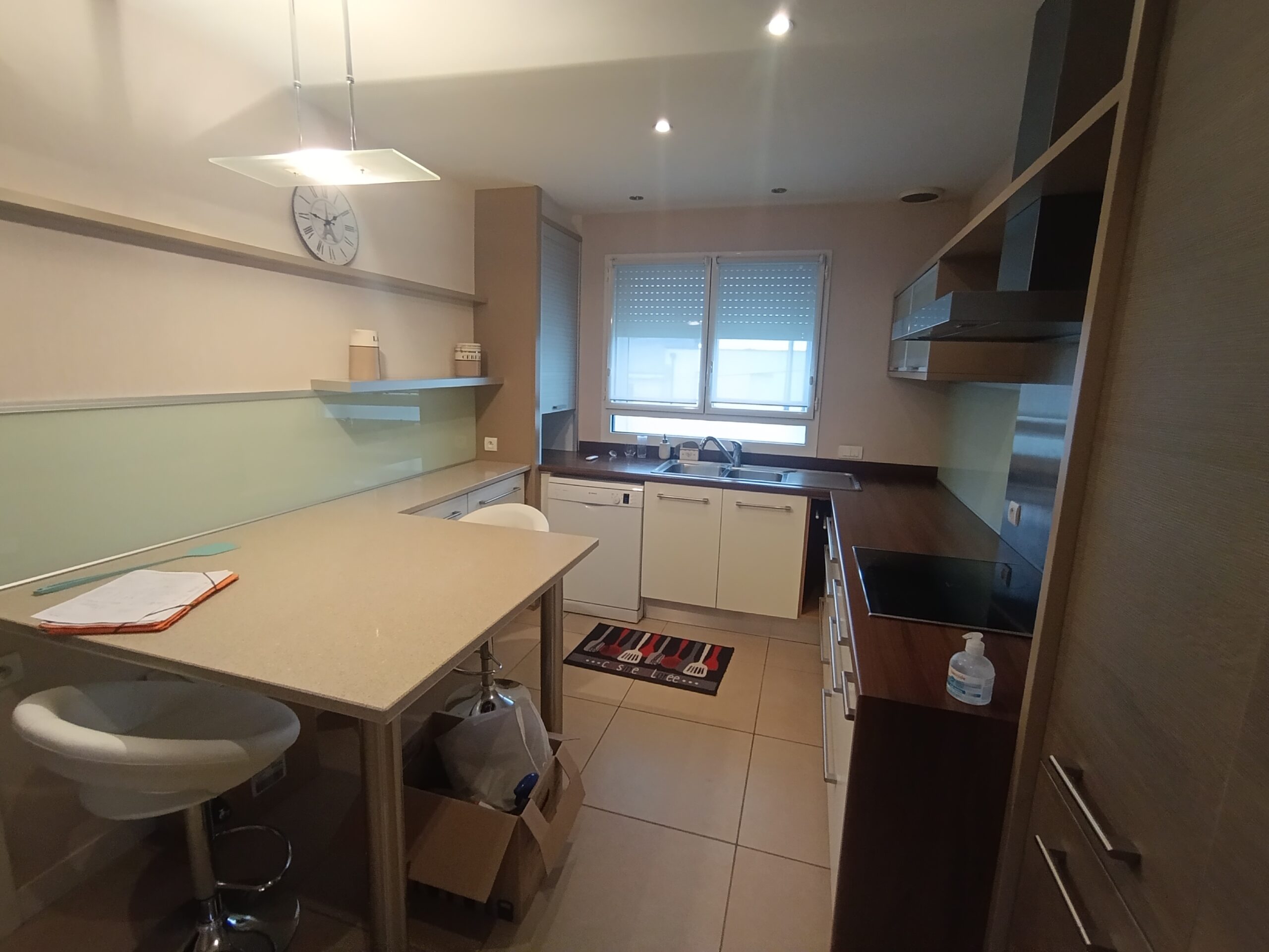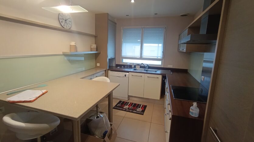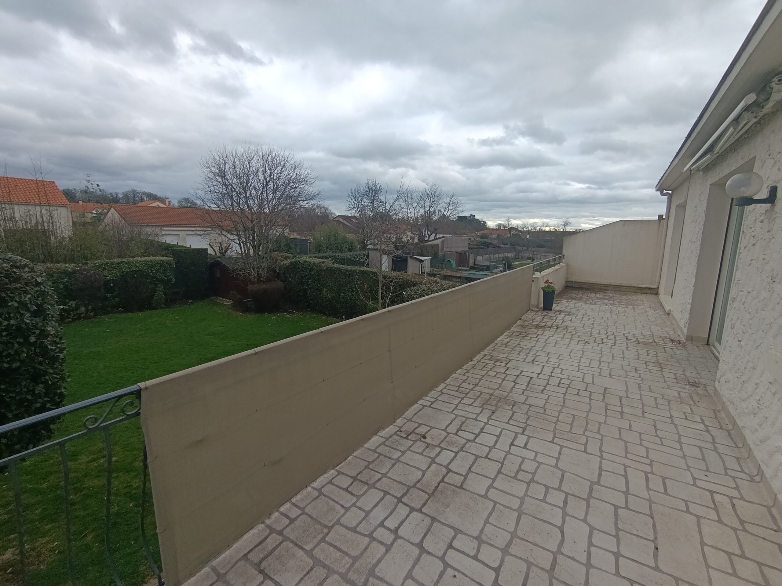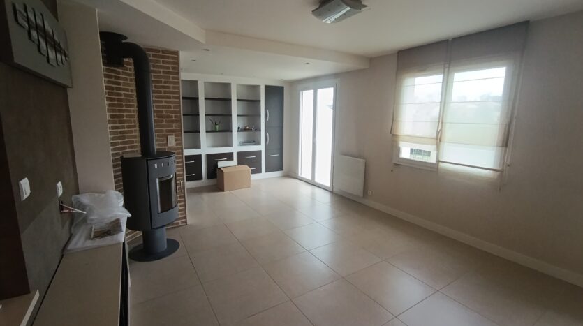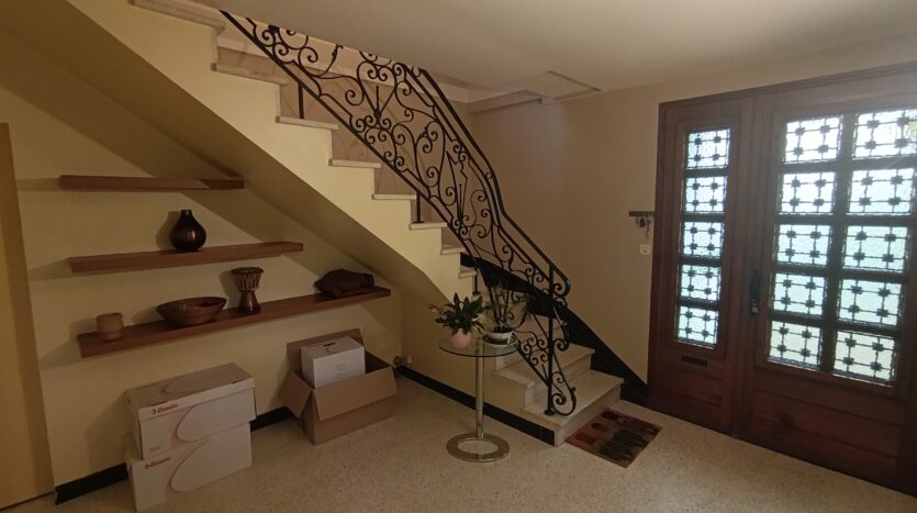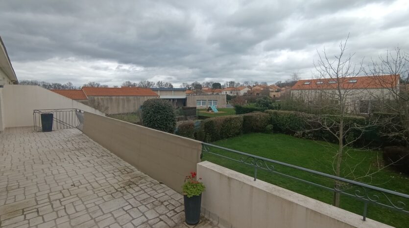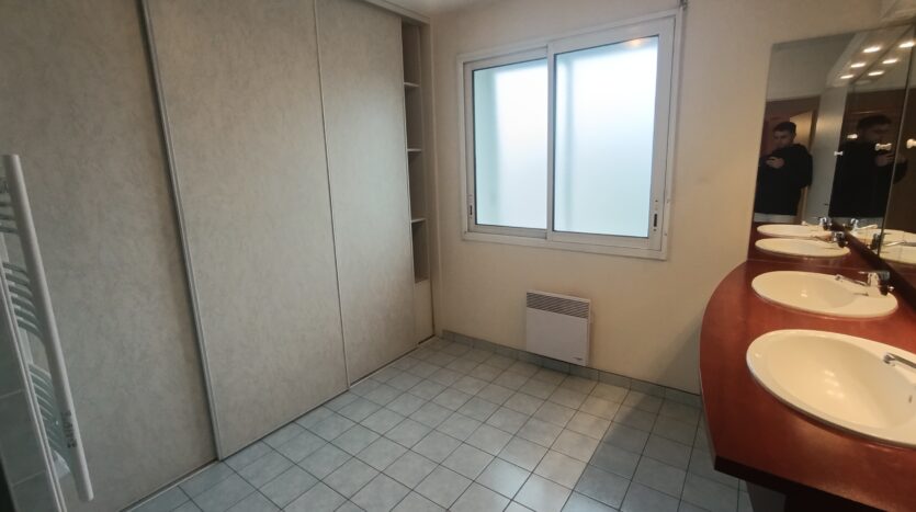 À l’étage, le logement comprend un salon-salle à manger, une cuisine aménagée et équipée refaite en 2010, trois chambres, deux salles d’eau et une terrasse avec un escalier permettant l’accès direct au jardin.